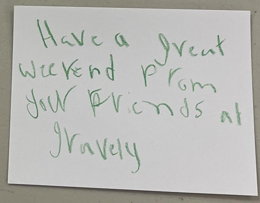 One of the really special aspects of Crossroads Connection is our young volunteers. Over the past year, there have been an increasing number of youth groups, sports teams, and individuals who have written inspirational notes to place in our food bags. Here are just a few examples of the notes that kids write to inspire those who need weekend food and some emotional support.